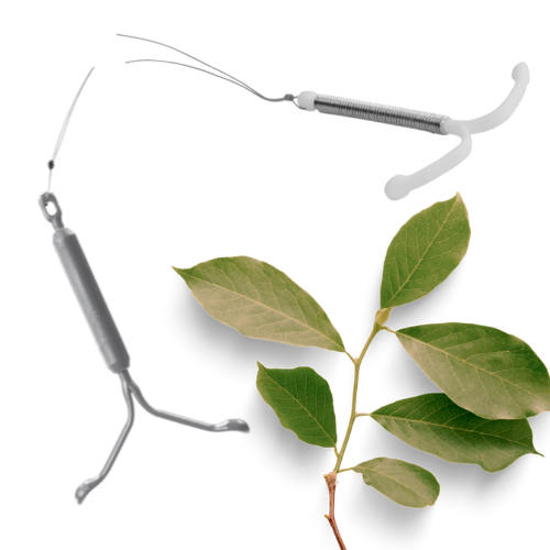 The Mirena or Skyla IUD – which contains a small amount of localized hormone  – is also a small, T-shaped piece of plastic, but it is not wrapped with copper, and also contains small amounts of levonorgestrel, a non-estrogen hormone (so it’s an okay choice for those who do not want to or cannot use estrogen⁠). That hormone is not how the IUD itself works,  but rather primarily is there to help prevent a typical side effect of the Copper-T: longer, heavier or more painful periods. Most using Mirena or Skyla have shorter, lighter periods and some may stop having periods altogether, which some see as a bonus and others are not comfortable with. The Mirena can be left in place for half as long as the Copper-T: for up to five years, and the Skyla can be left in place for up to three. People who want lighter, shorter periods, the possible absence of periods (but accept spotting may still occur erratically), or who have allergies to copper may find the Mirena or Skyla to be their best choice.