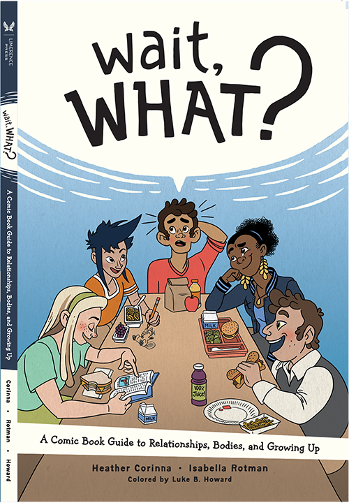 We made our way back to it in 2017, and in fall of 2018, partnered with publisher Oni/Limerence Press, and our editor, Ari Yarwood. We then all worked our tushes off to get it all the way done, which is why today – AT LONG LAST! SOUND THE TRUMPETS! DOO DO DOO DOOOOOO! – we can finally present you with Wait, What? A Comic Book Guide to Relationships, Bodies and Growing Up, a book we love and loved making very much.
