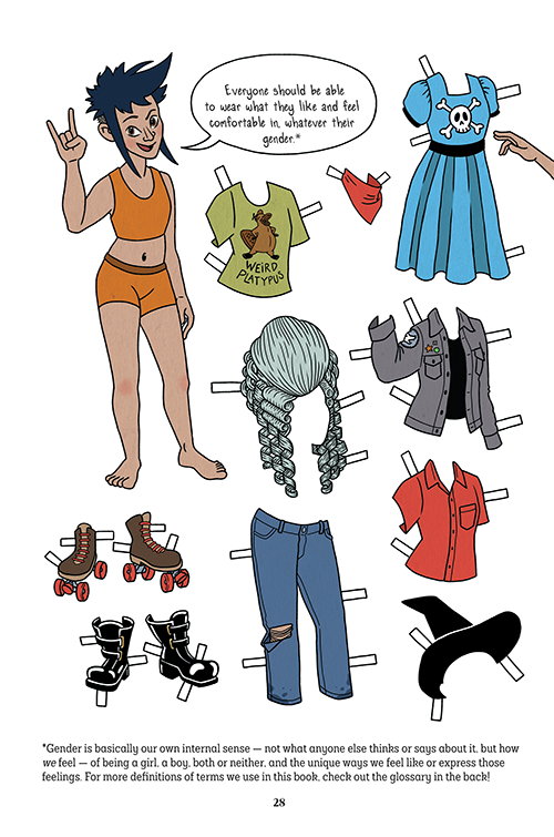 (at bottom of the page) * Gender is basically our own internal sense — not what anyone else thinks or says about it, but how we feel — of being a girl, a boy, both or neither, and the unique ways we feel like or express those feelings. For more definitions of terms we use in this book, check out the glossary in the back!