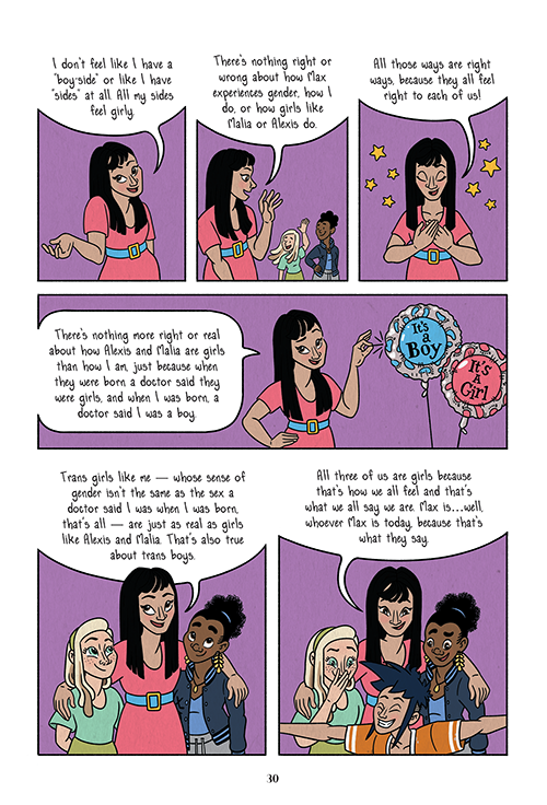 I don’t feel like I have a “boy-side” or like I have “sides” at all. All my sides feel girly. There’s nothing right or wrong about how Max experiences gender, how I do, or how girls like Malia or Alexis do. All those ways are right ways, because they all feel right to each of us!